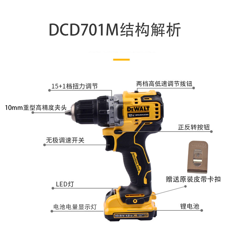 DEWALTD Dewei DCD701M Wireless Electric Screwdriver 12V Brushless Charging Lithium Electric Drill DCD708