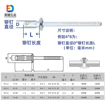 Iron single-strand core pulling rivets All-iron galvanized pull rivets Structure core pulling rivets Bolt nails 3 2 4 4 8