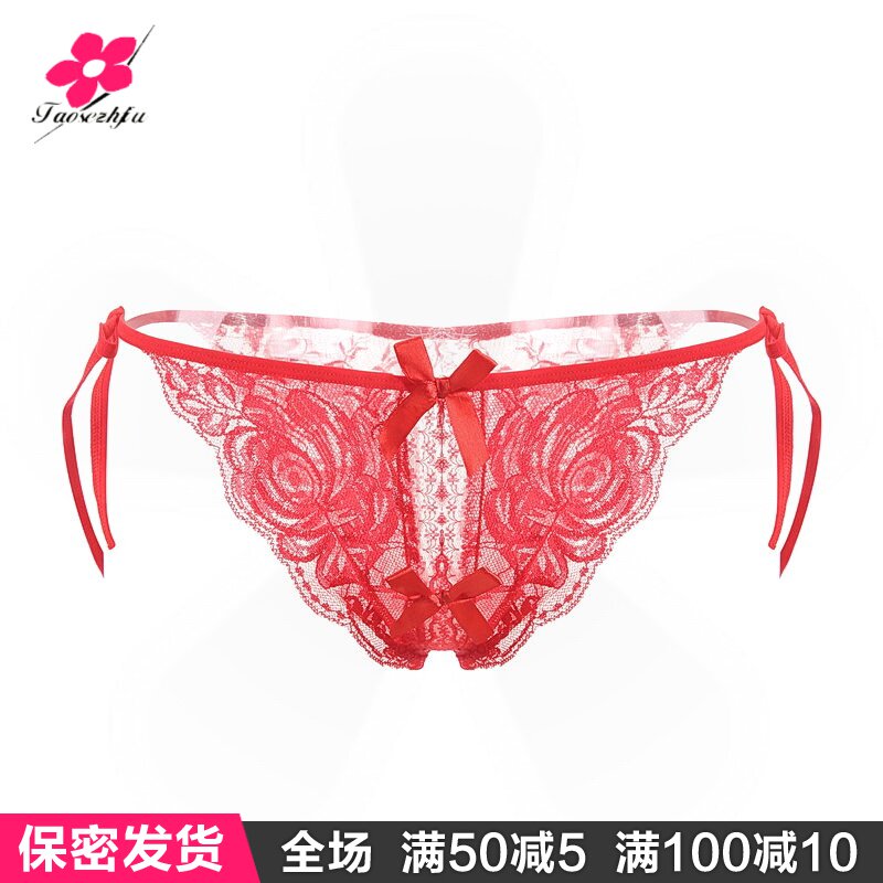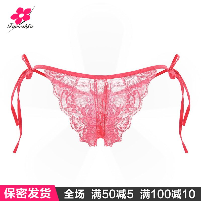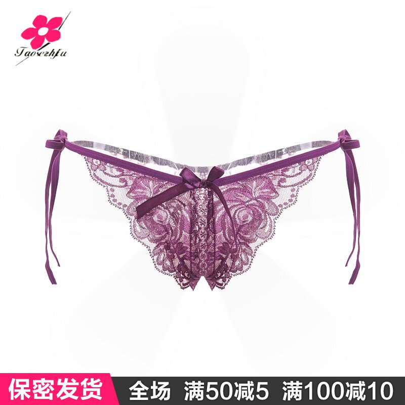 Lace Spice Tinged Pants Underwear Free Lady Open Crotch Transparent Clairvoyant Seductive Passion Laces Black