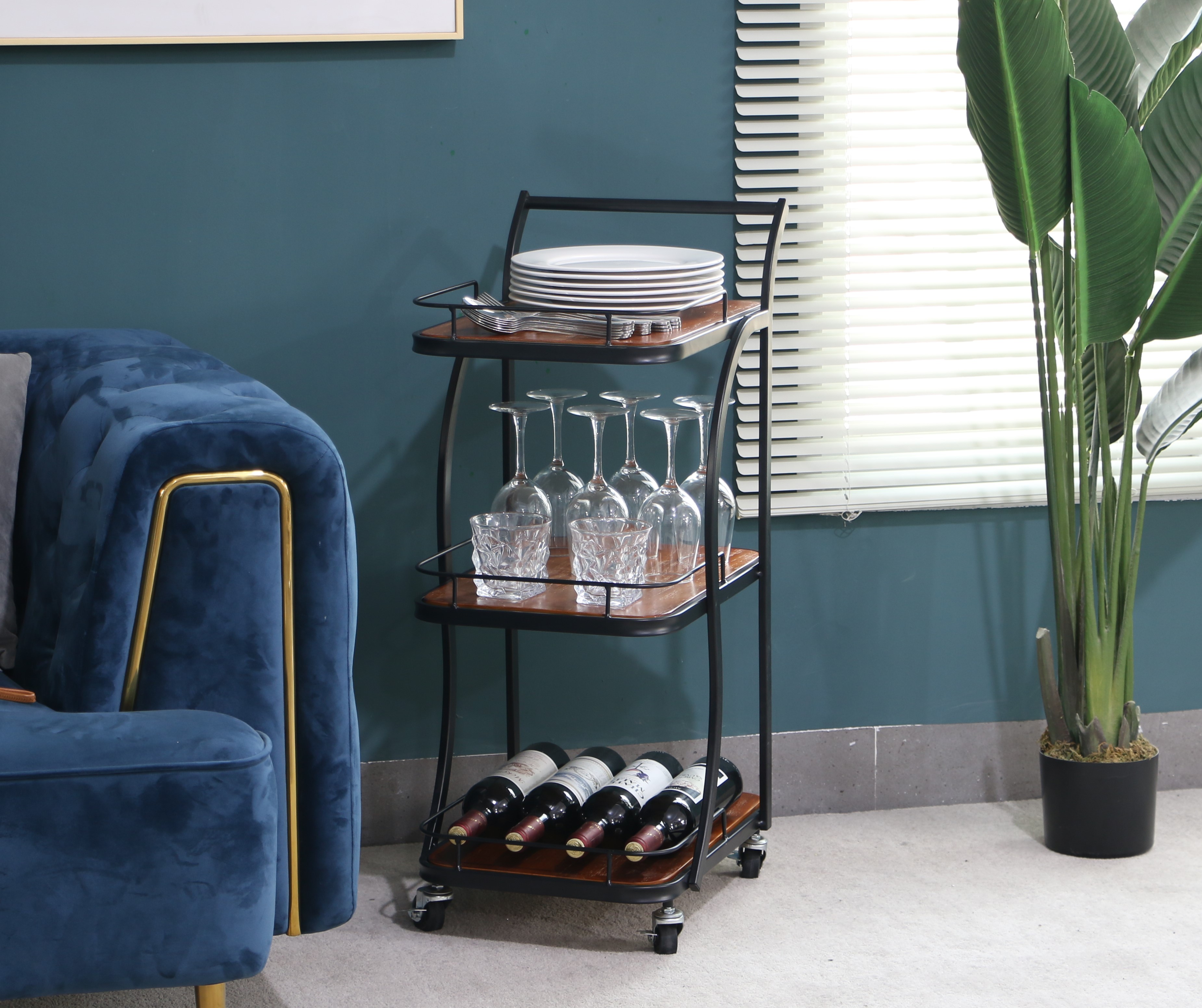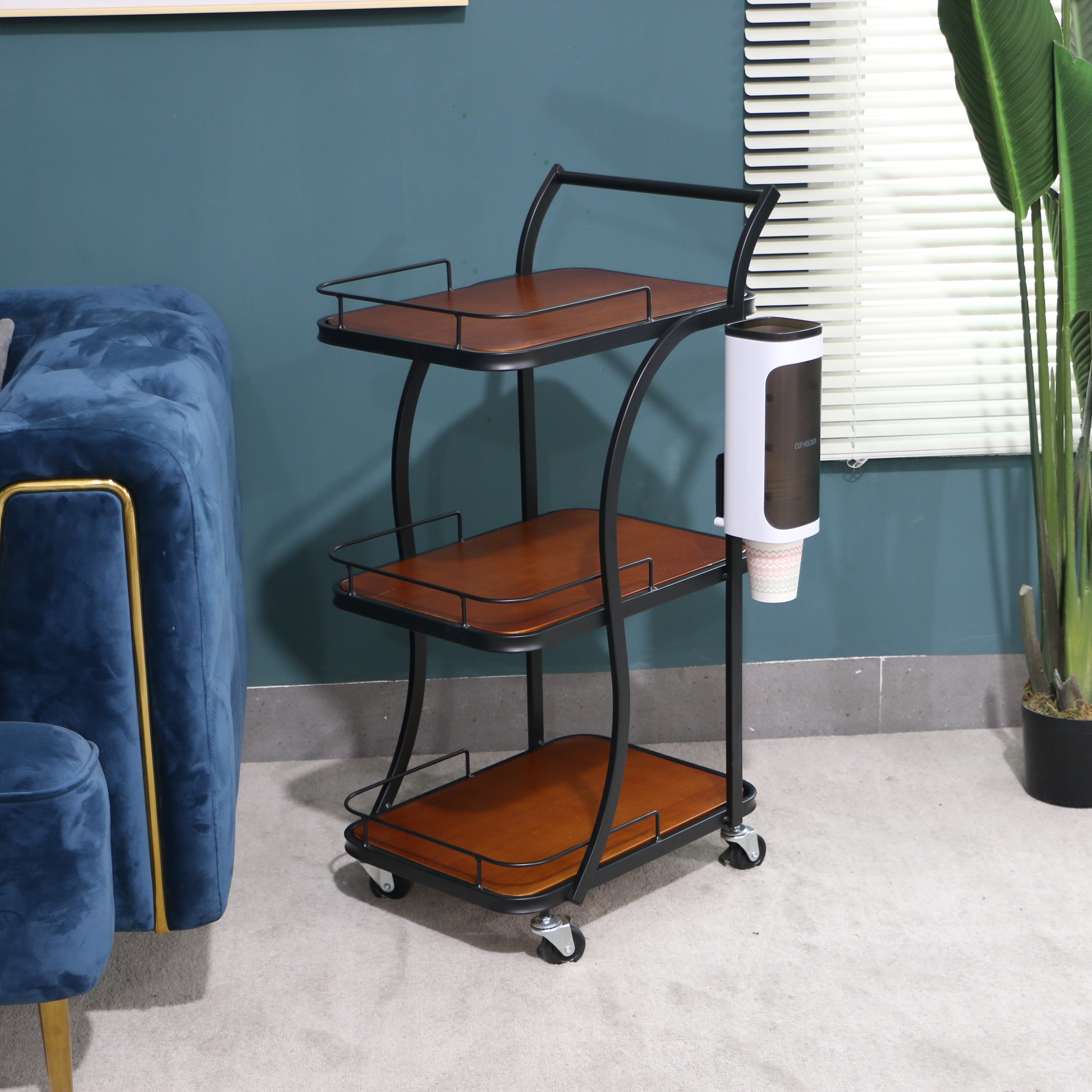 Solid wood wrought iron tea cart dining cabinet 4s shop snack cart wine cart beauty salon cart rack mobile dining cart