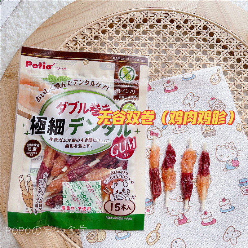 Petio Grain-Free Double Roll Chews (15 Pieces) Petio Grain-Free Chicken Chews (16 Pieces) Chicken Calcium Bone Sticks (7 Pieces) Ripple Chicken Small Breast Small Fish (50g) Small Chicken with Hidden Beef Tendon