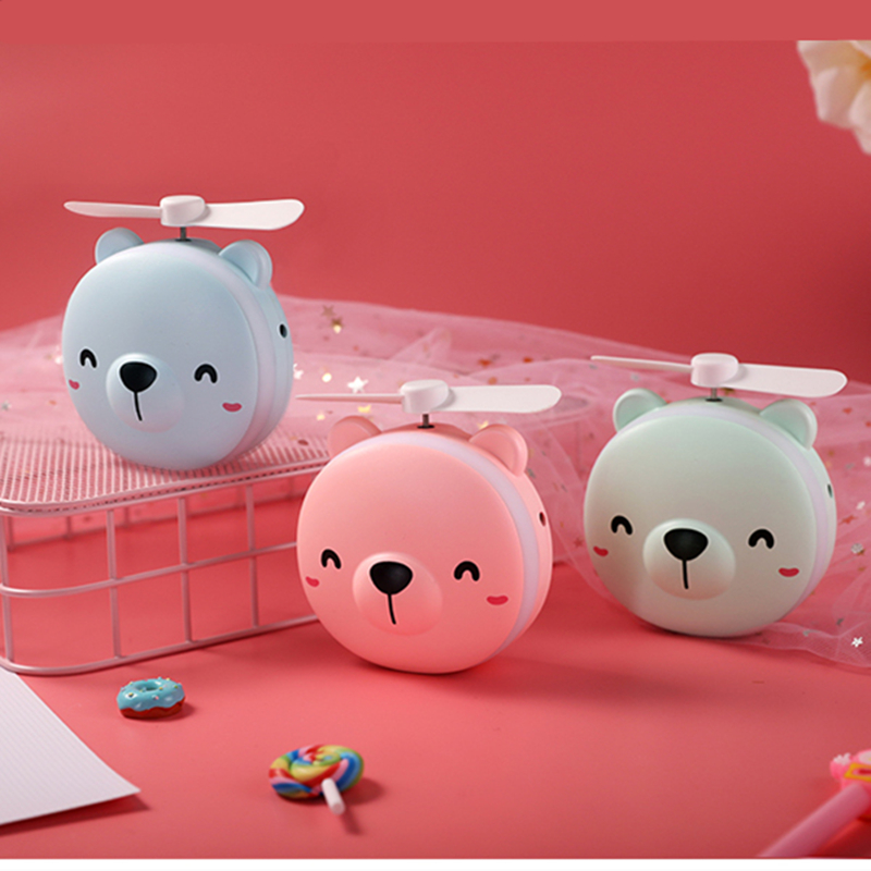 Creative cartoon led makeup mirror night light fan girl mini portable student dormitory outdoor usb fan