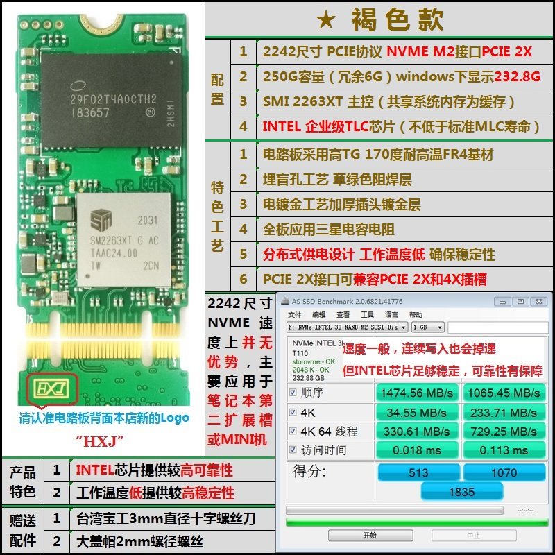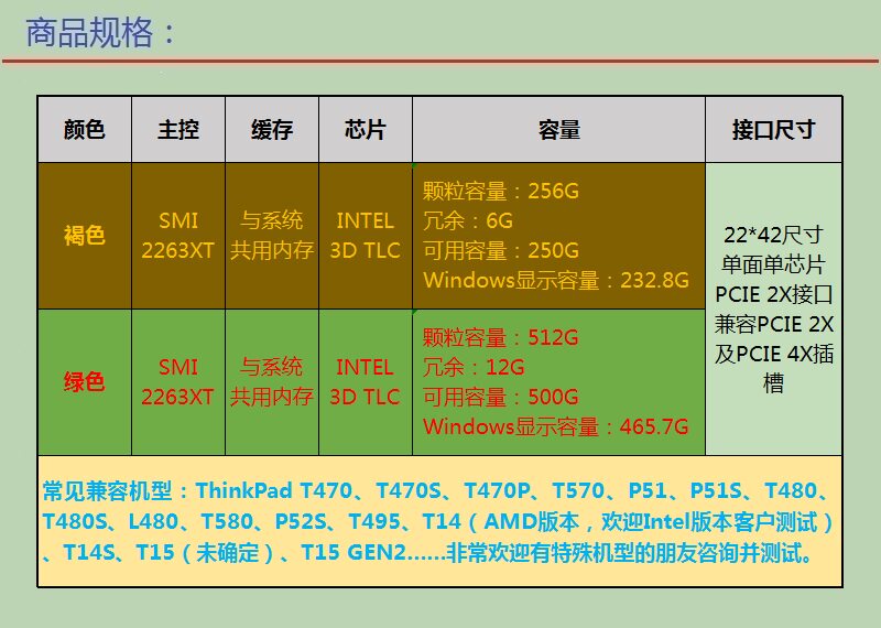 INTEL Enterprise TLC Chip Manufactures 256G 512G 2242 PCIE2X NVME M2 Solid State Drive