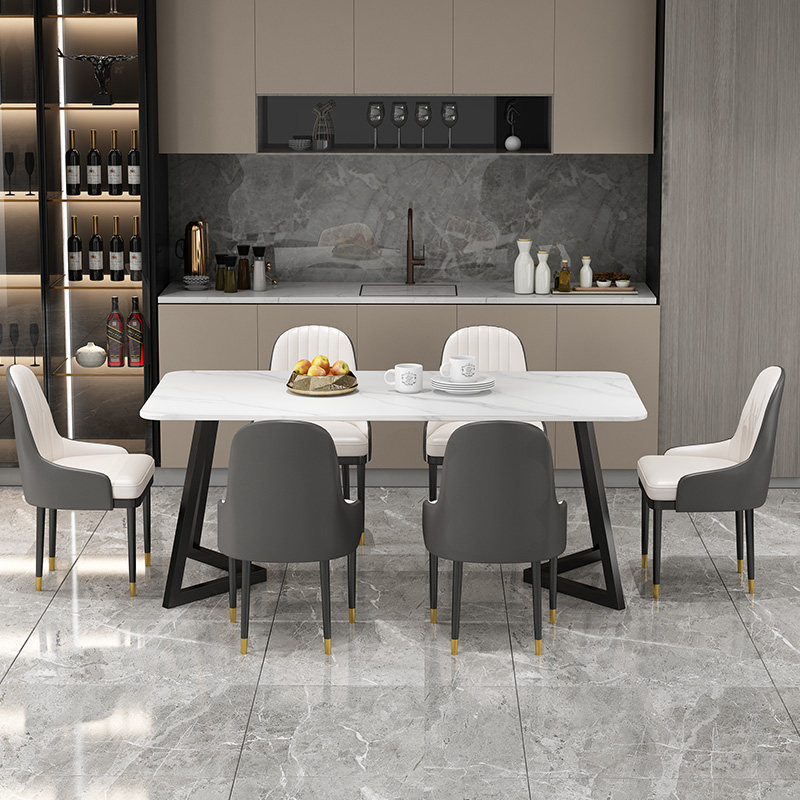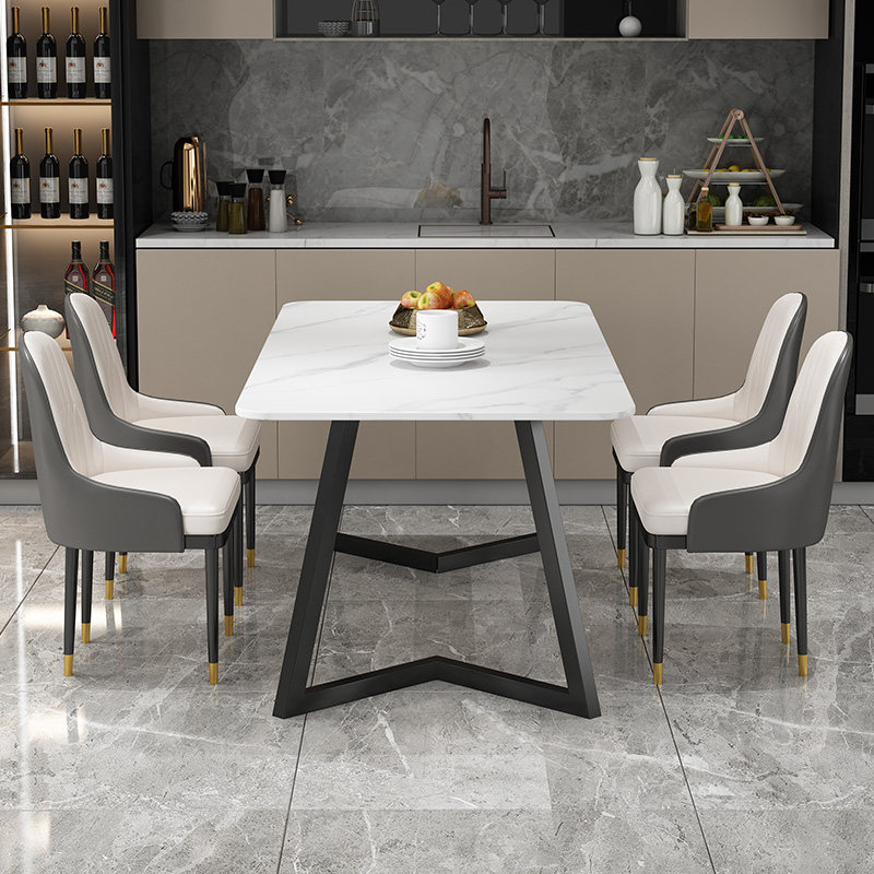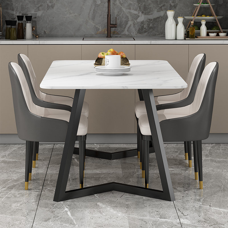 Modern minimalist home small family type rock plate dining table and chairs combined living-room multifunctional marble rectangular dining table