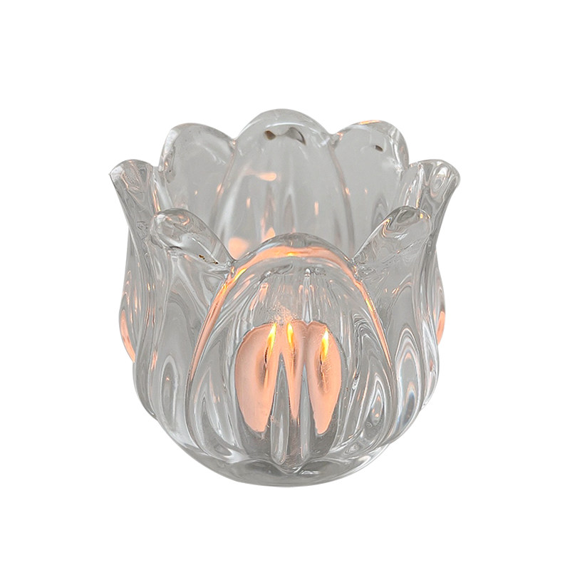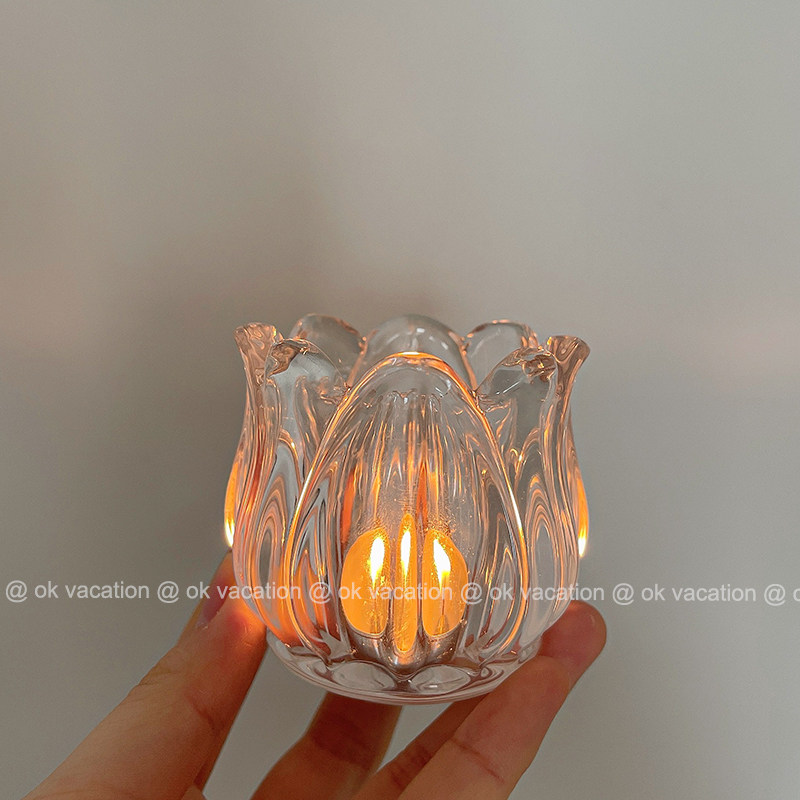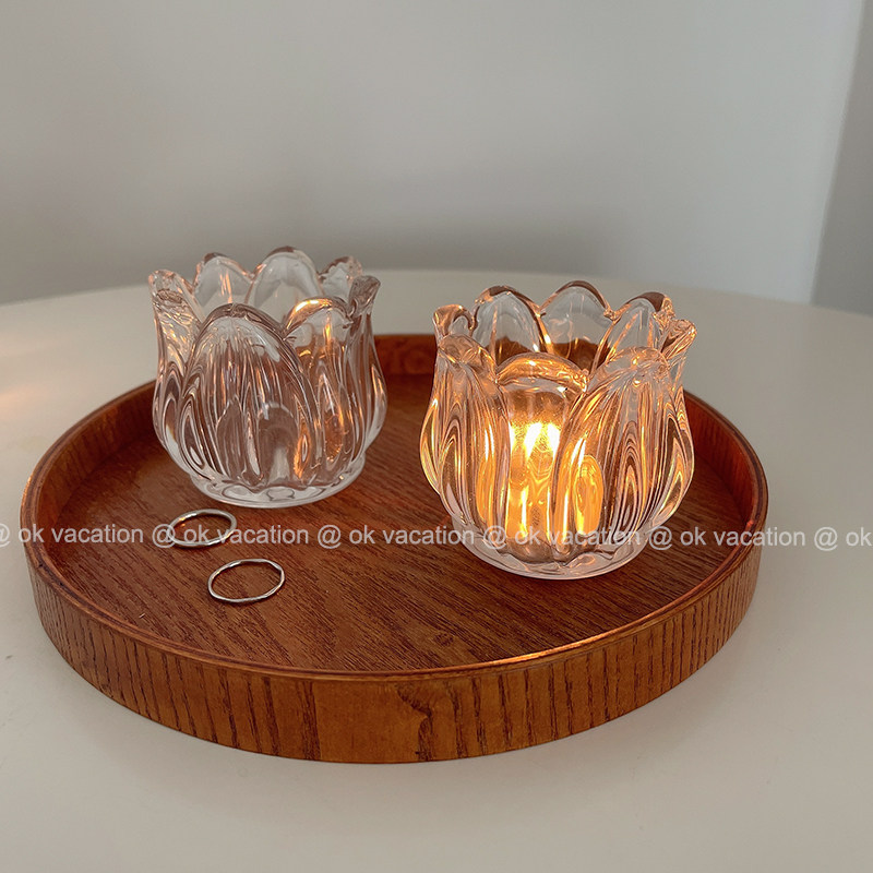 Korean style ins style retro tulip glass small candle holder home candle ornaments European romantic table decoration