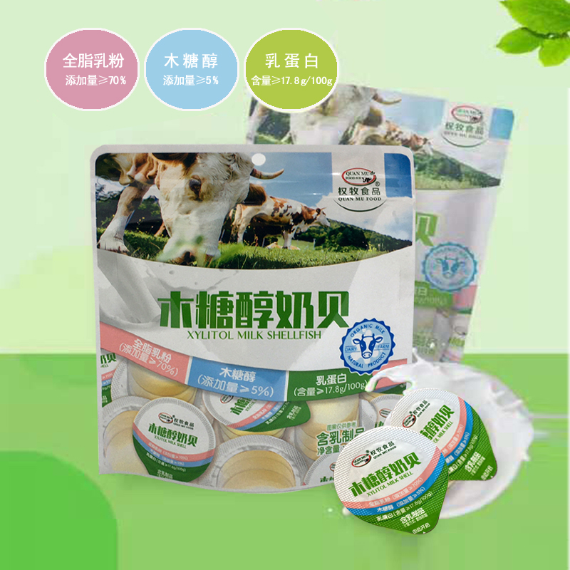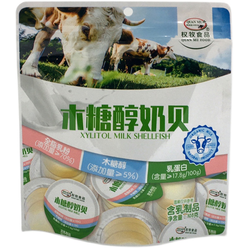 Inner Mongolia special product Quan Mu probiotic AD calcium xylitol milk shellfish 108g children's snacks dry milk tablets small package