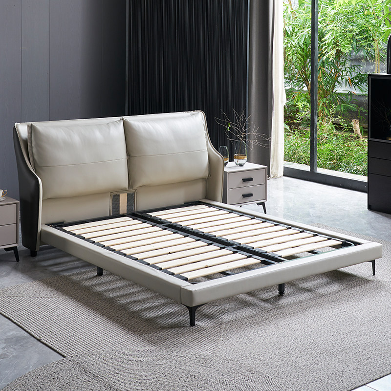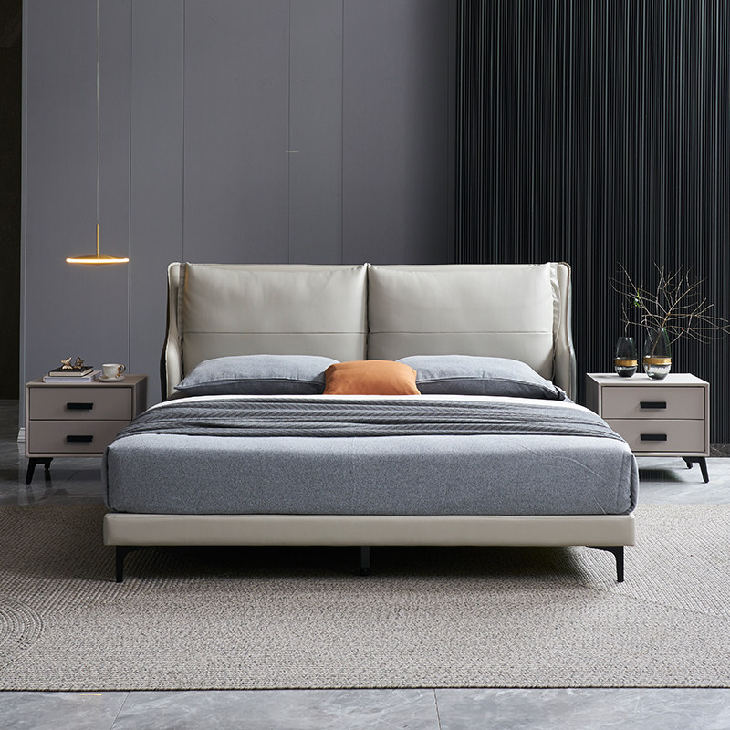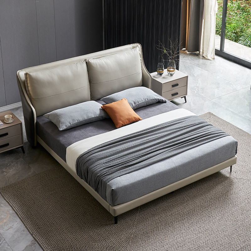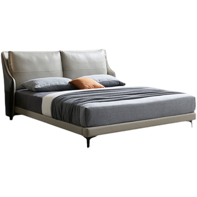 Nordic Light Lavish Genuine Leather Bed Master Bedroom Minimalist Modern Small Household Type Extremely Minimalist Headlining Bull Leather Designer Double Bed