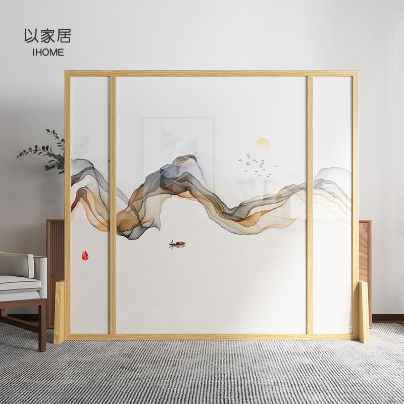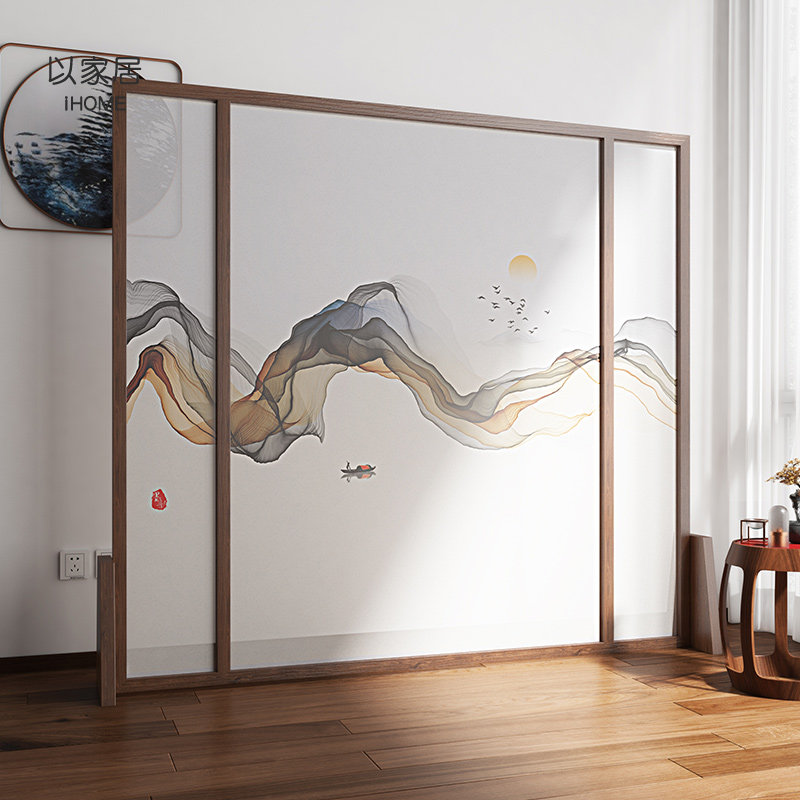 New Chinese Screen Partition Living Room minimalist modern entrance to the house Xuanguan shielded bedroom with movable landscape solid wood seat screen