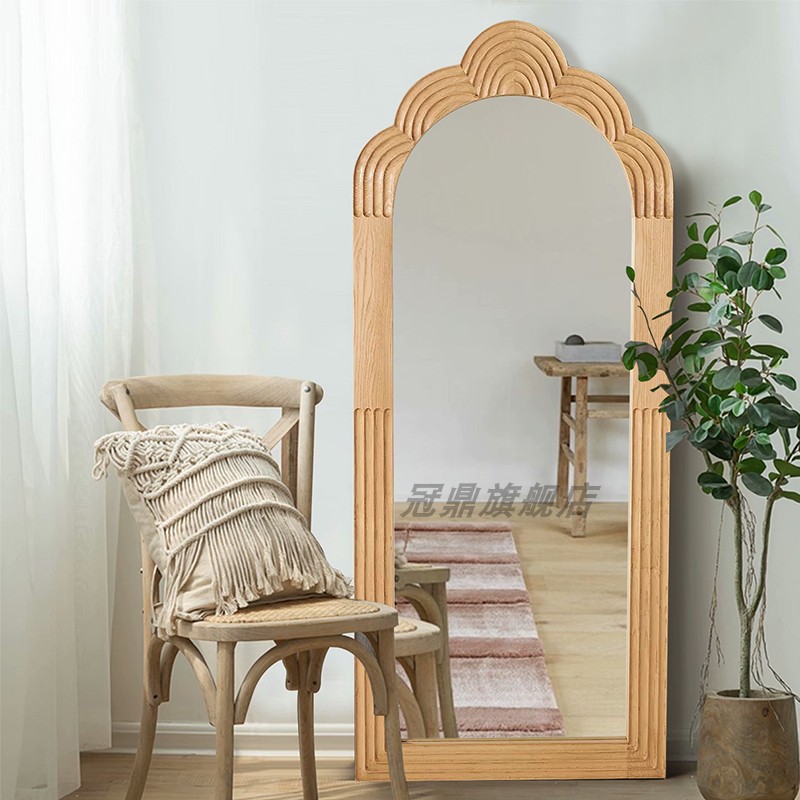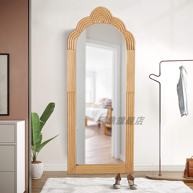 European-style Mirror Vaulted Mirror Full Body Full-body Mirror Retro Sculptures Floras Log Floor Mirror Home Solid Wall-mounted Decorative Mirror