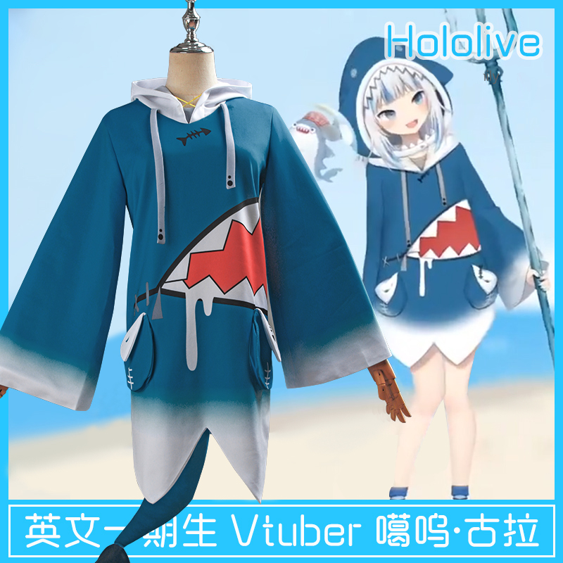 Hololive English first-phase student Vtuber Karu Gula cos shark cospaly clothing female wig