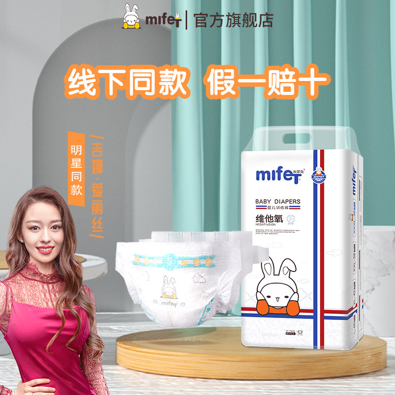 Mify Rabbit flagship store paper pee pants M code 54 piece toddler baby ultra-thin dry and new baby diaper