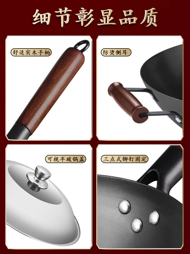 Zhangqiu Iron Pot Official Flagship Frying Pot Handmade Old-fashioned Frying Pot Household Non-coated Gas Furnace Applicable