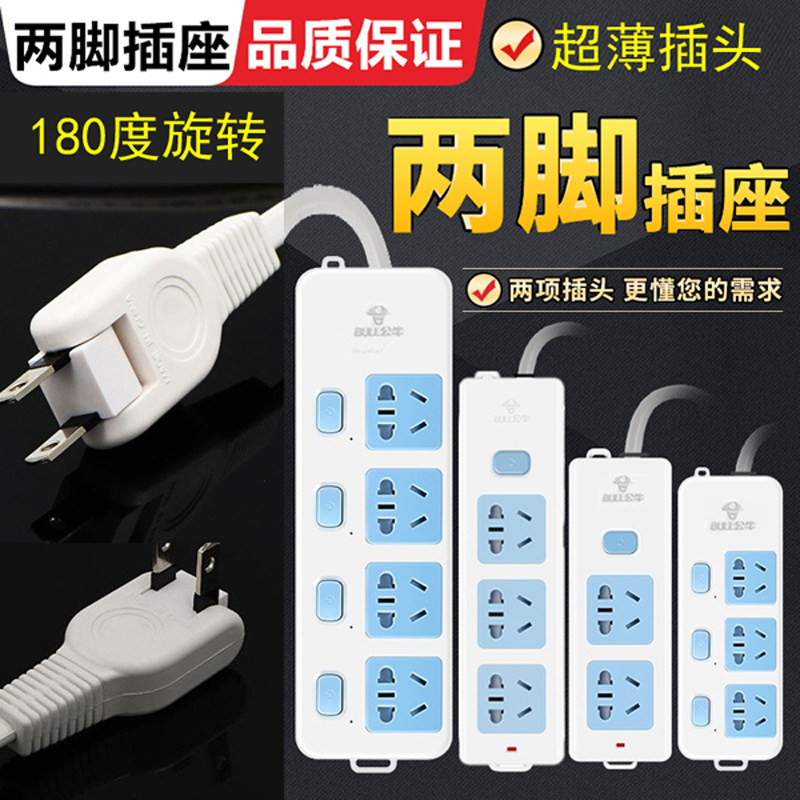 Ultra-thin Bull Two plug-pin plug-pin switch socket small flat coarse copper core extension line customized insertion