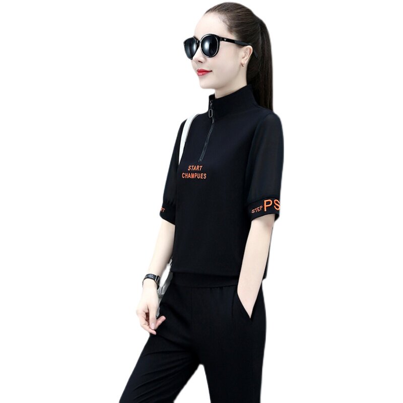 Tide Card CVY Sports Suit Women 2022 Summer New Korean Version Fashion Short Sleeve Running Loose Casual Two-piece Style