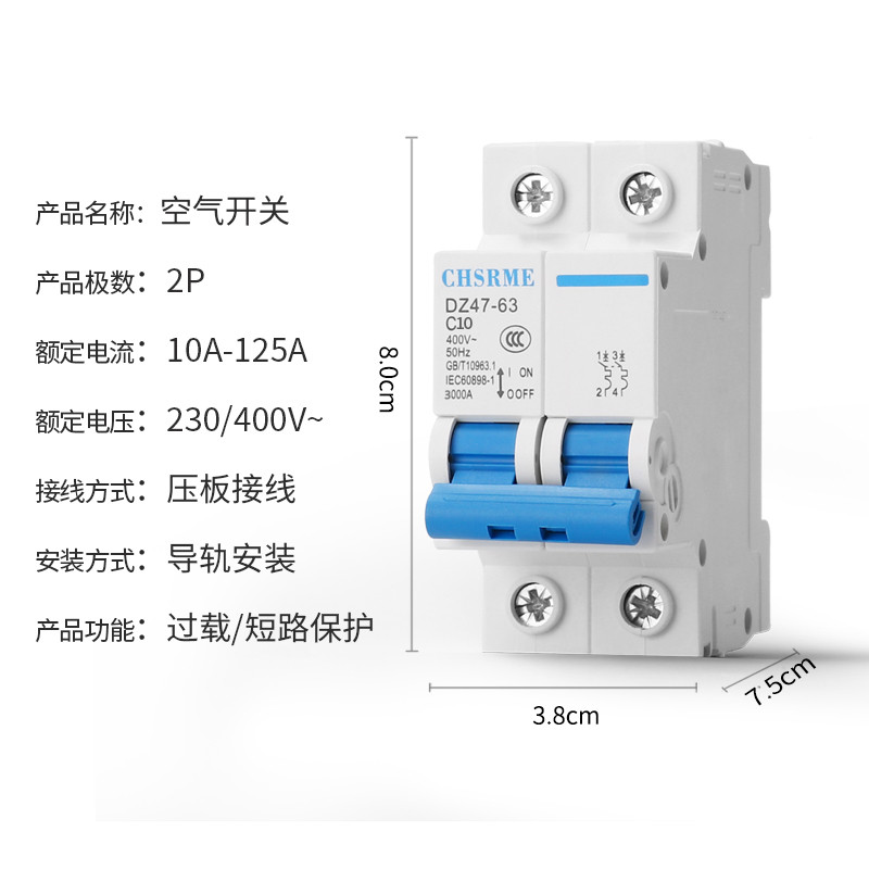 Shanghai People's air switch 2P empty opening small breaker DZ47-63 National 3C certification