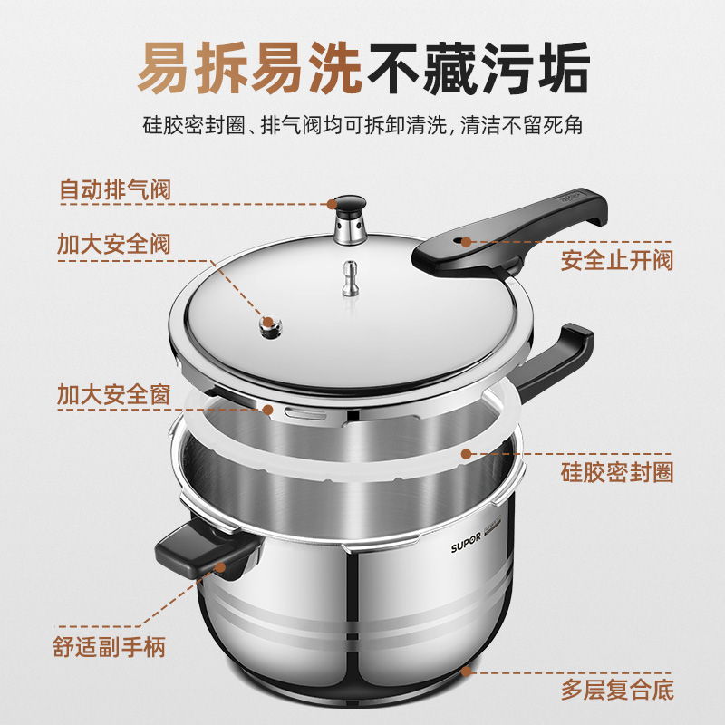 Supoir official flagship store 304 stainless steel pressure cooker home gas induction cooker universal explosion-proof pressure cooker