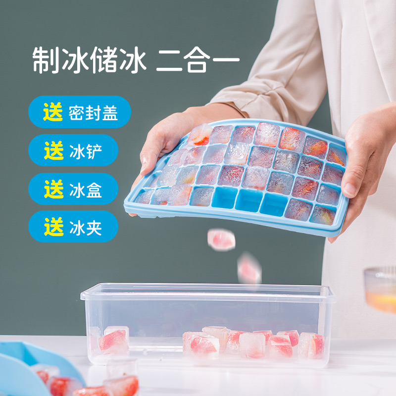 (Light blue-with cover 36 slots) Ice storage box Ice shovel Ice clip