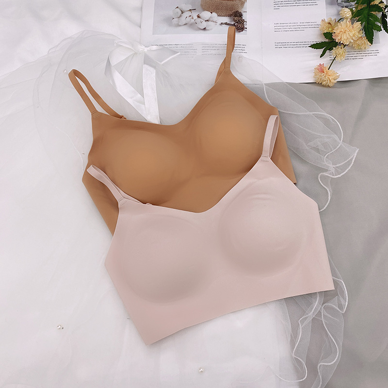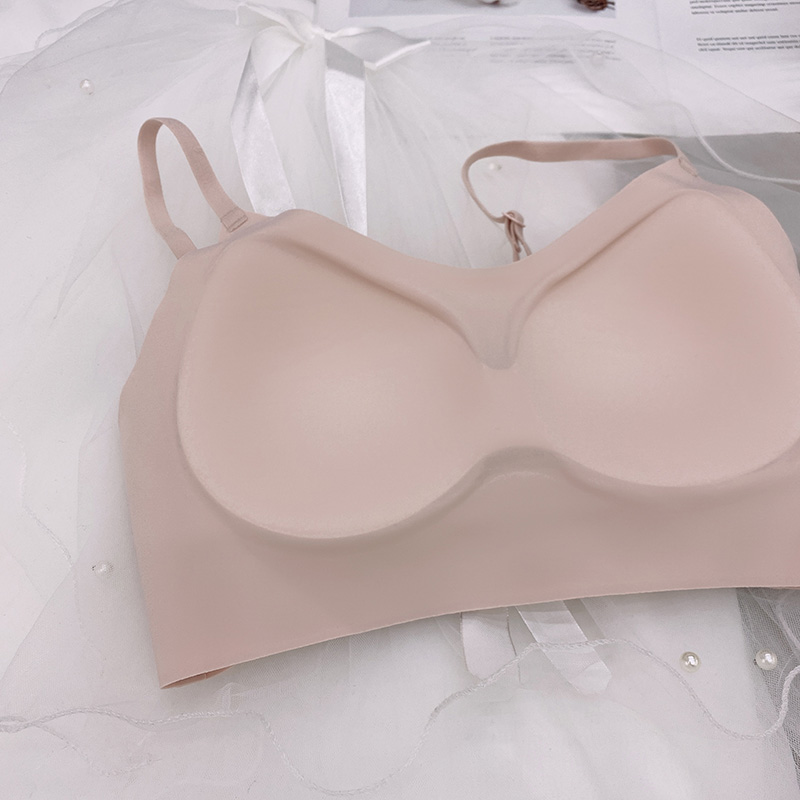 Japan peace of mind without marks and scratches free wearing bra pure color anti-walking light small chest thickening fixed integrated cup harness underwear