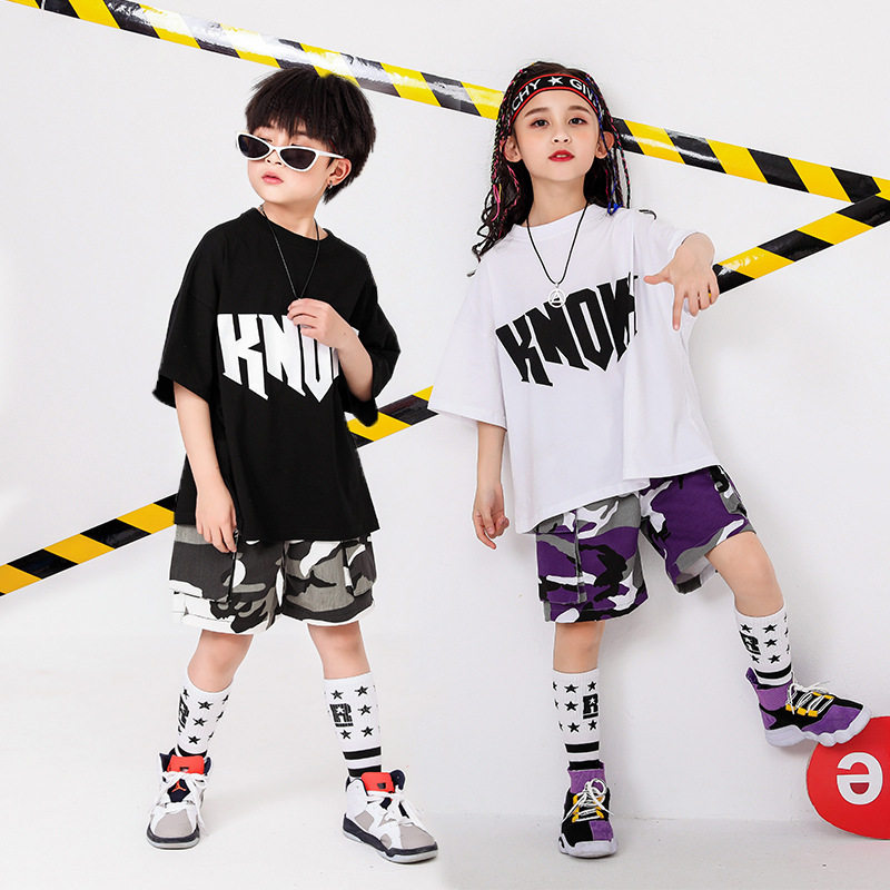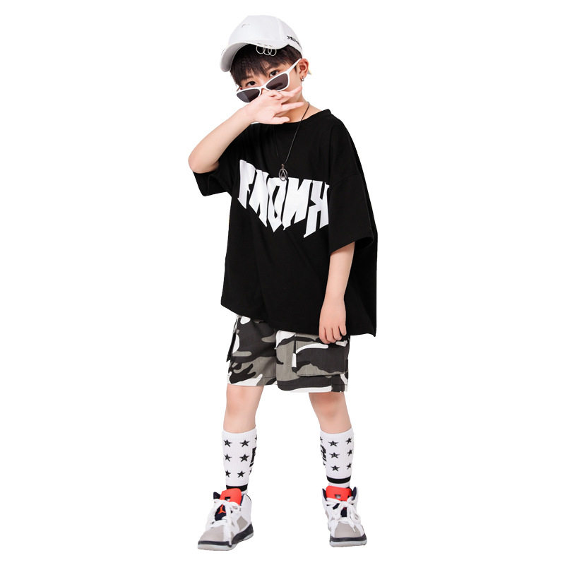 Xi'an high-end June 1 children's hip-hop suit summer boys camouflage hip-hop performance clothing girls jazz dance walk