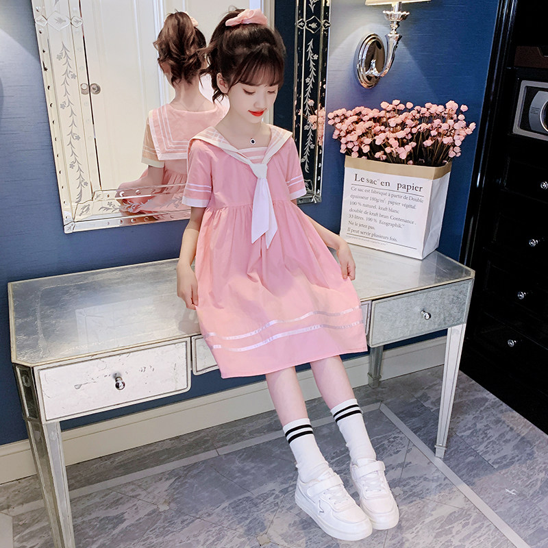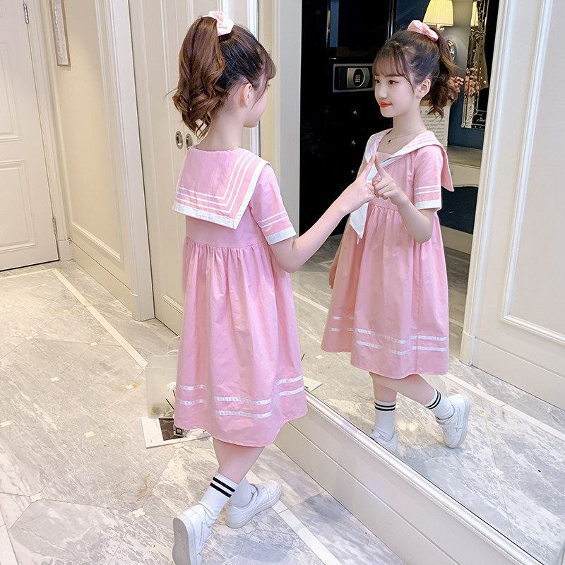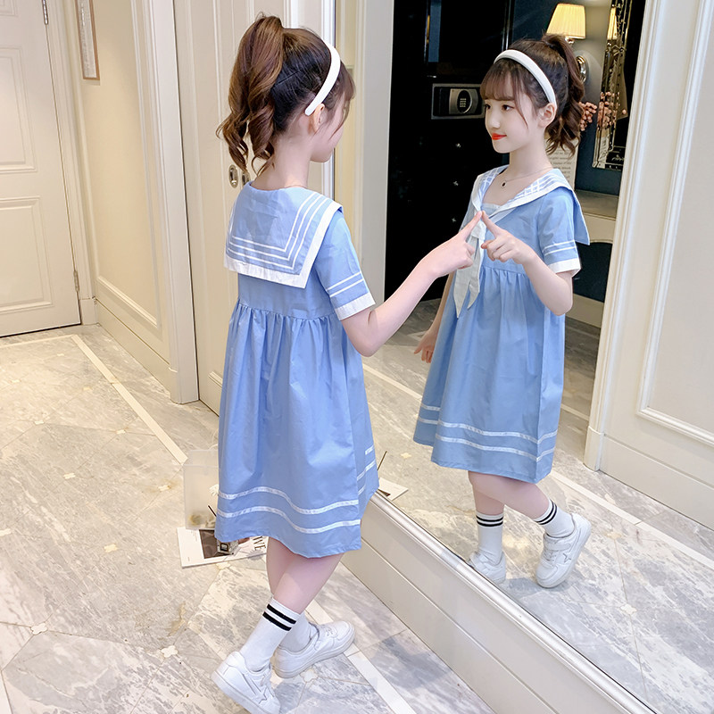 Girl Foreign Pie Dress Summer 2022 New Elementary School Kids Girls Academy Wind Princess Dresses Summer Dress Children Suit