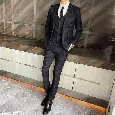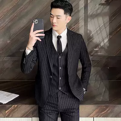 Suit men's suit Casual striped suit Korean business slim formal dress Groom handsome wedding dress Youth