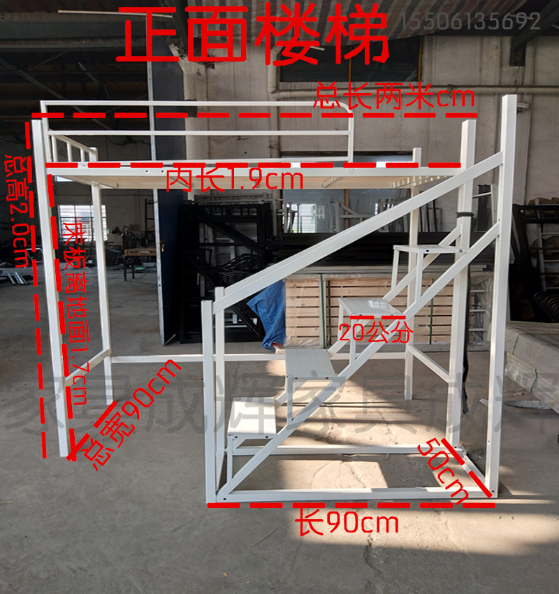 Wrought iron elevated bed dormitory bed bed under table student apartment bed combination bed single bed thickened reinforced metal