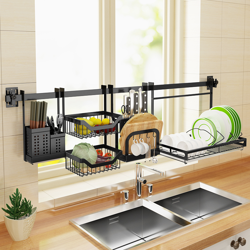 Kitchen shelf wall mounted layer hanging frame window stainless steel asphalt bowl frame hanging wall bowl chopstick pot