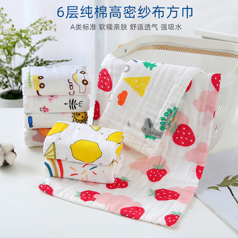 Pure cotton children's towel pure cotton high-density six-layer gauze saliva towel children sweat-absorbent towel bath towel baby face towel