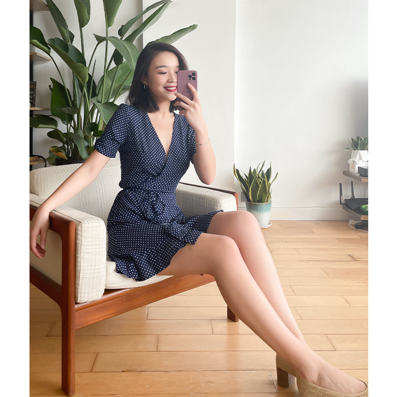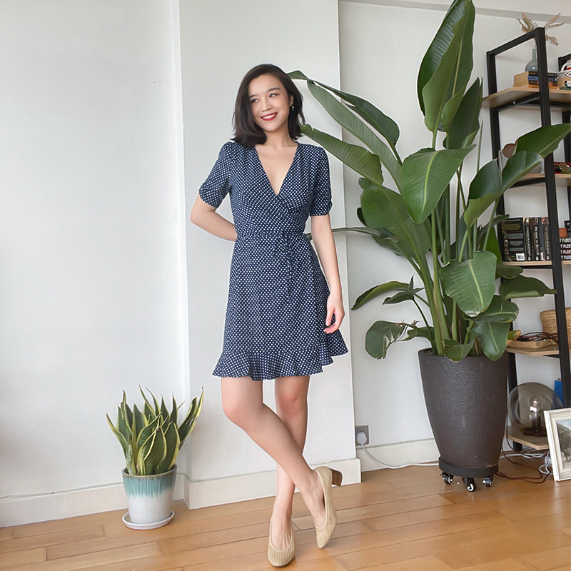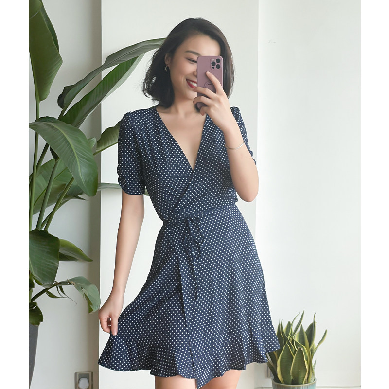 thecherrypie store owner keeps French classic polka-dot V-neck sexy waist and slim fishtail skirt dress