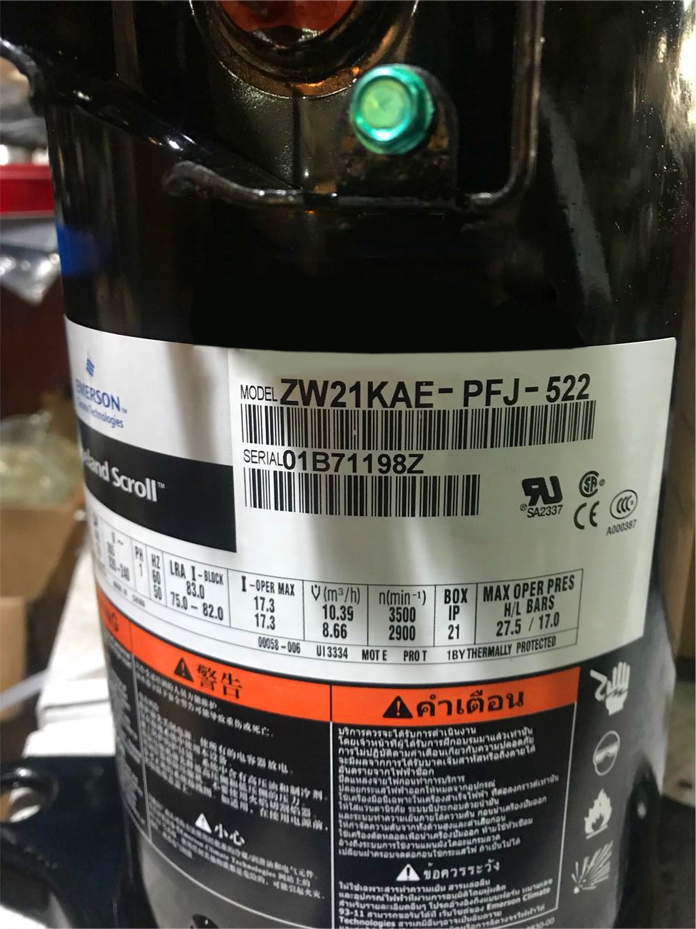 Original grain wheel 2P air energy heat pump water heater special compressor 3 tubes ZW21KAE-PFJ-522