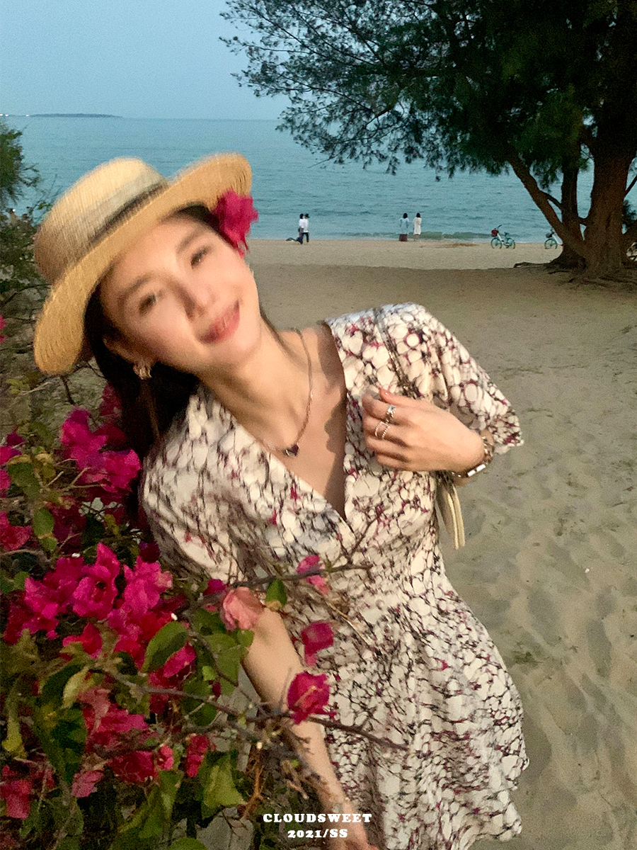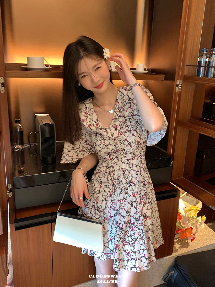 CloudSweet "1sabel" qualified romantic _V collar temperament Fancy Dress True Silk Polo Dress