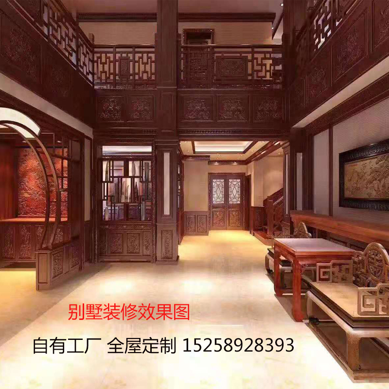 Custom stair handrails Antique doors and windows Dongyang wood carving new Chinese decoration solid wood lattice retro solid wood railings
