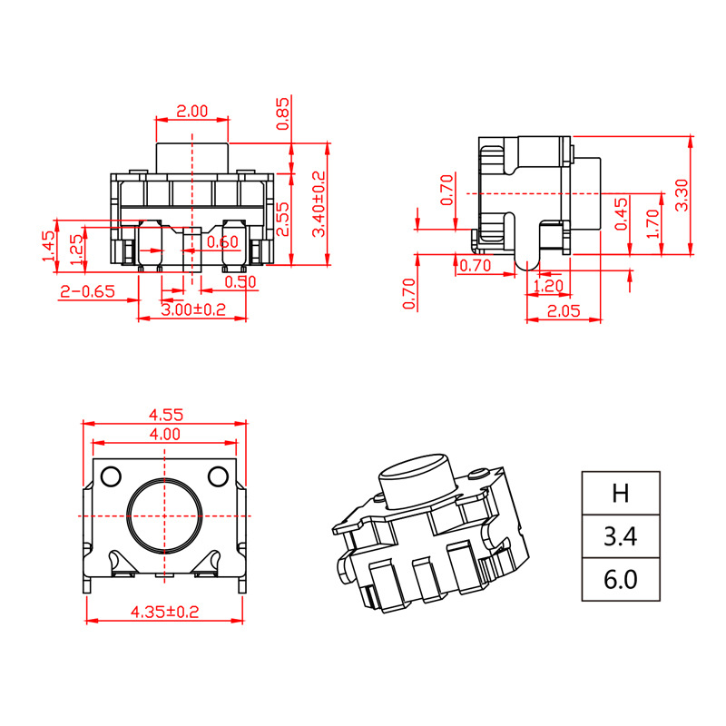 Side Tripod White Handle 3*5*3 4 6 0mm Smilkface Switch side press tap switch 4*5 Curtain button