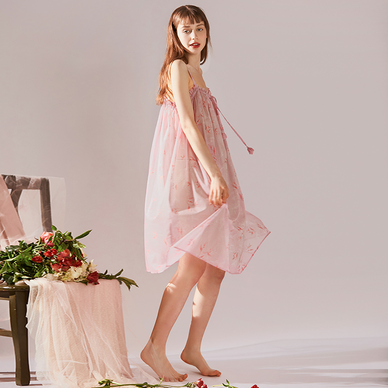 XEXZ nightdress women's 2022 new thin section floral suspenders French sweet lace home clothes sexy pajamas