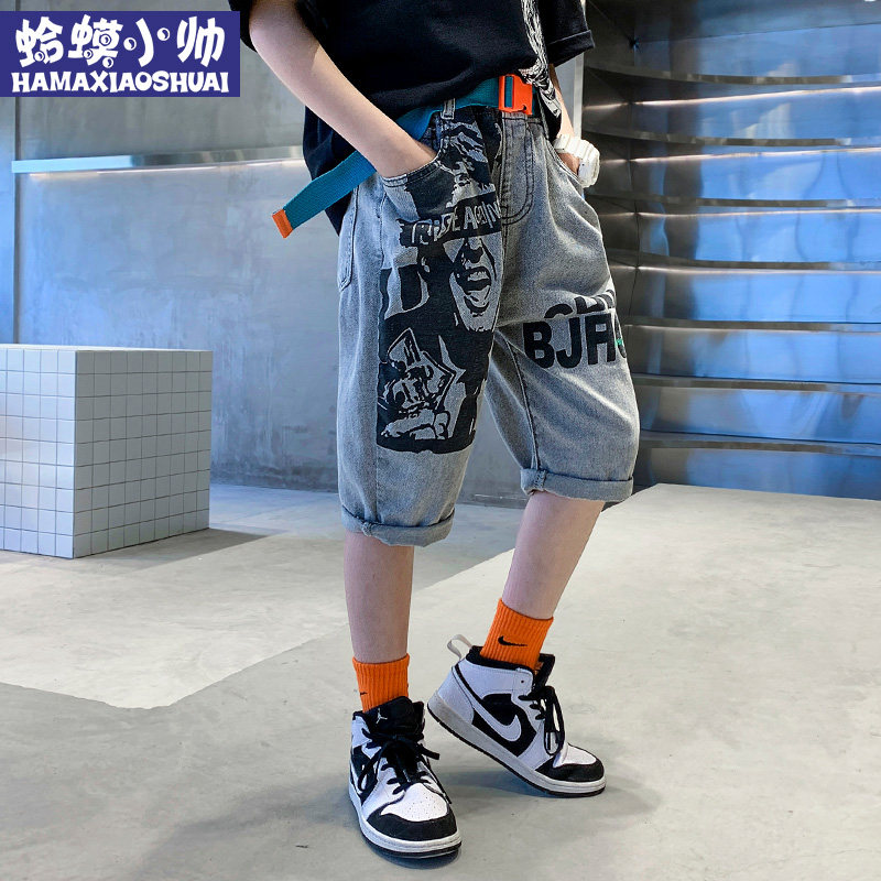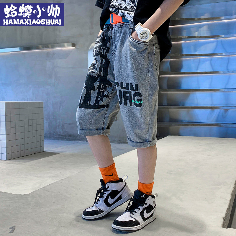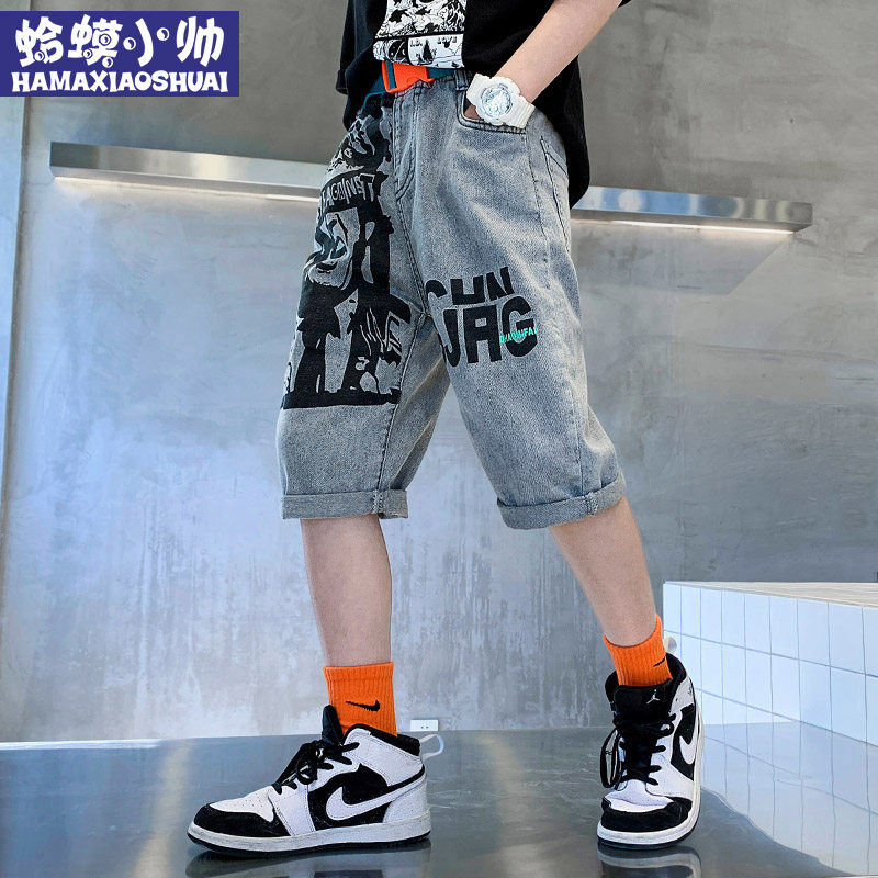 Children's clothing boy denim shorts summer thin section 2022 new Korean version of the big boy boy tide boy denim five-point pants