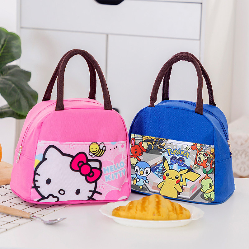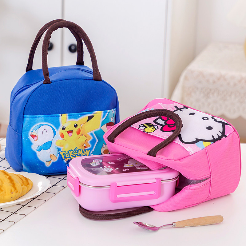 Elementary school bento belt cute cartoon children's handbag lunch canvas bento bag with rice small hand bag