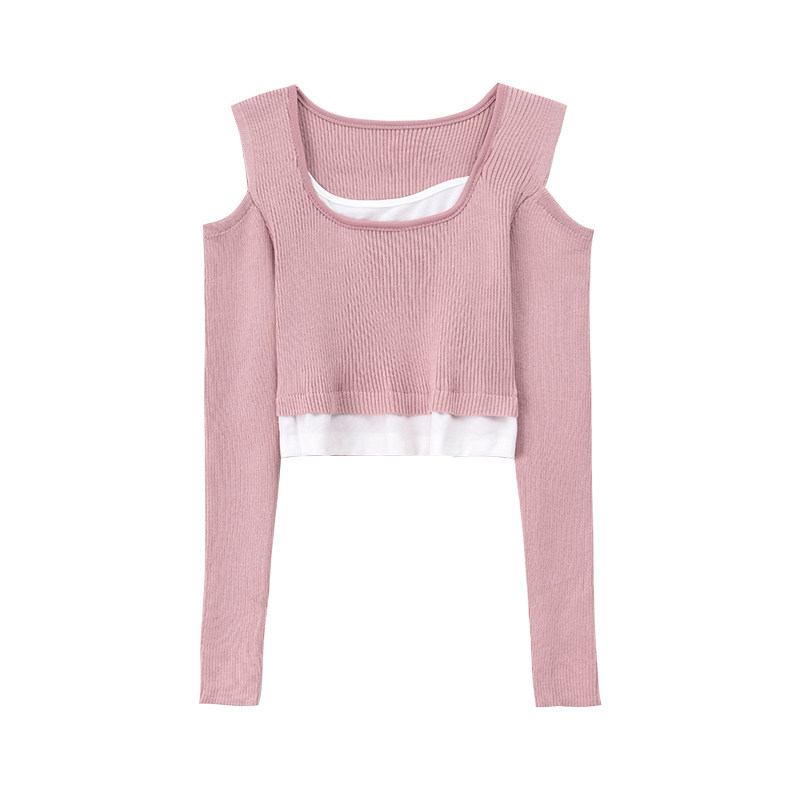 Morin Mo Jin off-the-shoulder design sexy slim knitted sweater women's 2022 autumn Korean version of the small net red short top