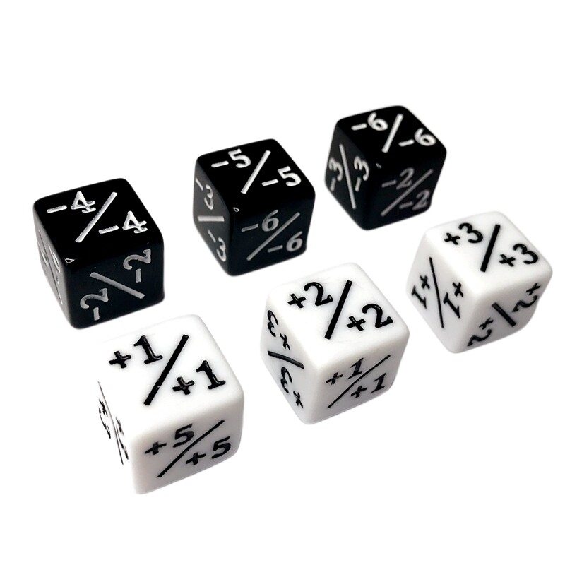 3 black and white each, 1 black and white storage bag (excluding dice)