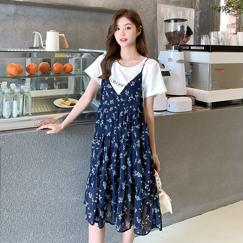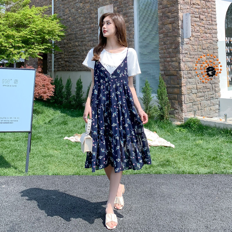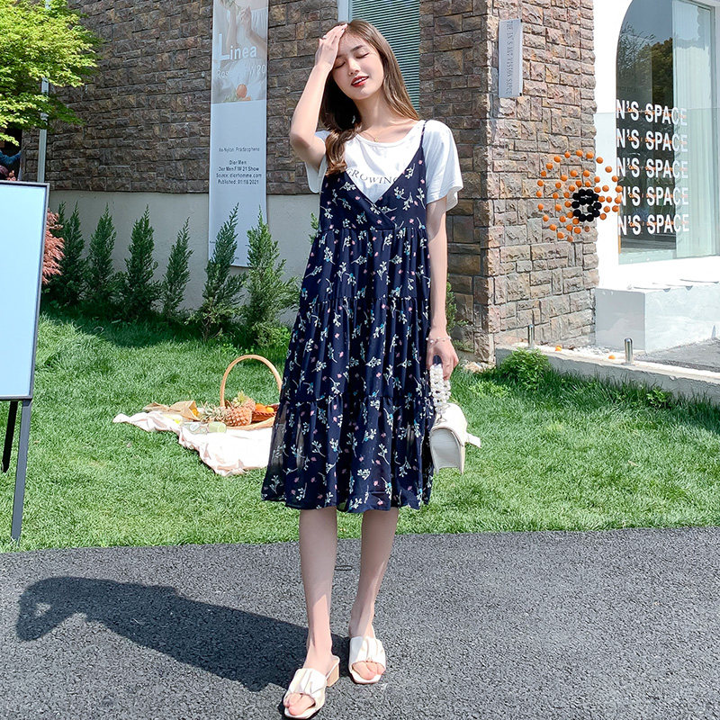 Pregnant Woman Summer Clothing Suit Foreign Fashion Models 2021 Nets Red Loose Tide Moms Snow Spinning Chopped Fancy Dress Little Subsummer