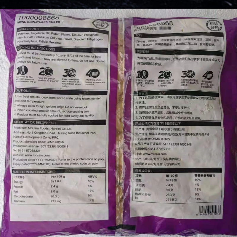 McCann spicy notes 1 5kg aromas of spicy and spicy with leather fries Frozen French Fries with Western Fried French fries Western Meal Raw Material
