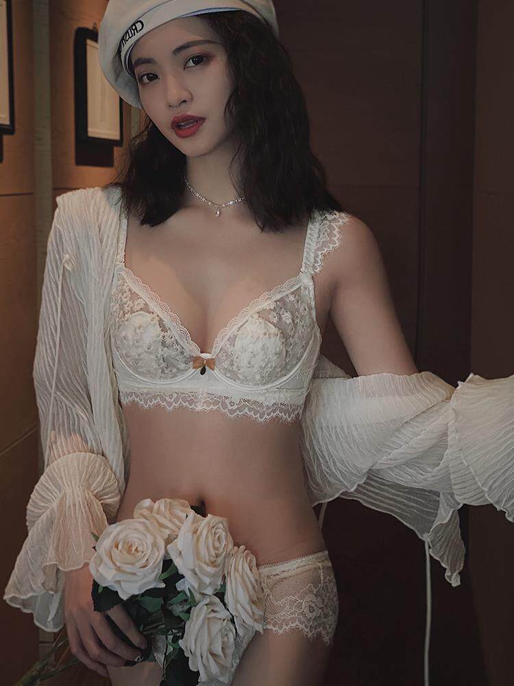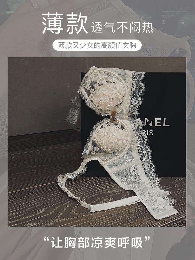 South Korea Sexy lingerie Summer new large breasted slim cotton cup Entrusted Ultrathin Lace Anti Drooping Poly-Woo Bra