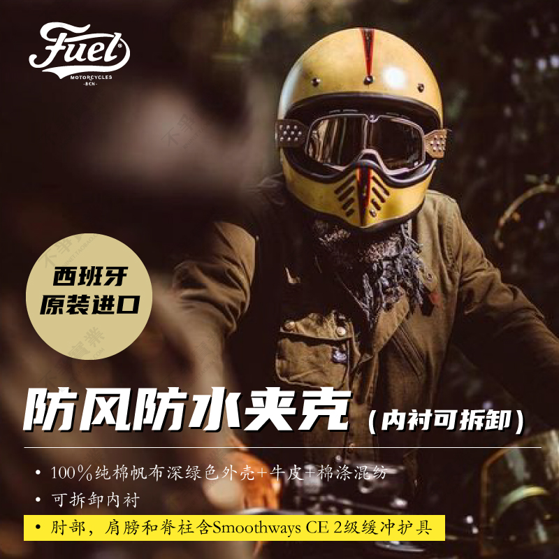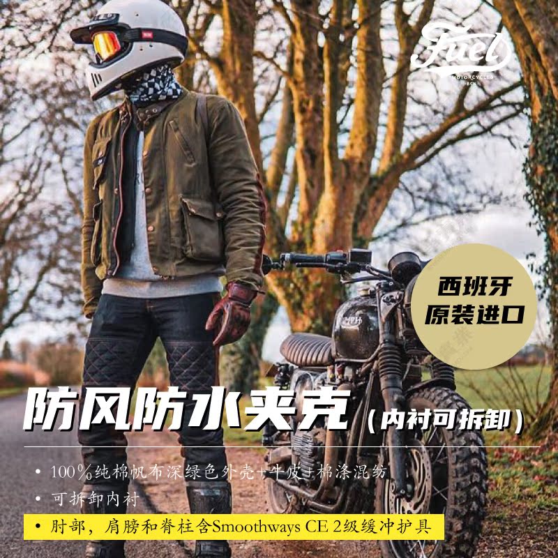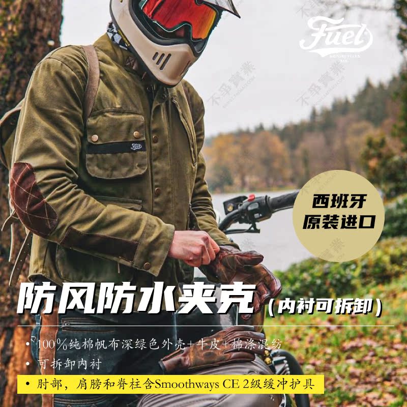 (FUEL) Spain detachable protective gear windproof water repellent off-road oil wax riding jacket motorcycle motorcycle