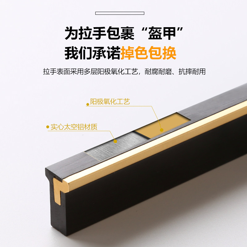 Cabinet door handle black high-end drawer wardrobe door solid wire drawing gold light lavish modern minimalist aluminum alloy handle