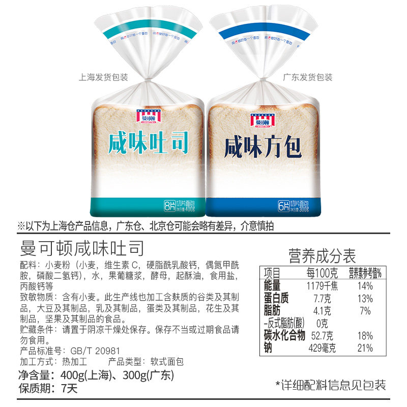 Mancoton salty toast bread breakfast ready-to-eat DIY sandwich ingredients semi-finished original pastry 400g bag