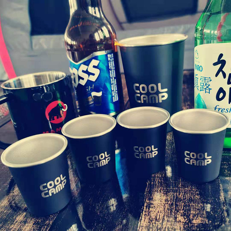 Outdoor camping portable wine glass 304 stainless steel white wine glass foreign wine glass tea cup water cup 4 sets of Korean soju cups