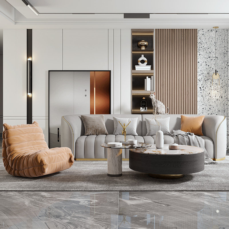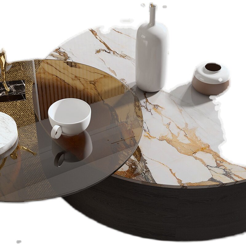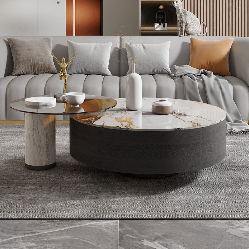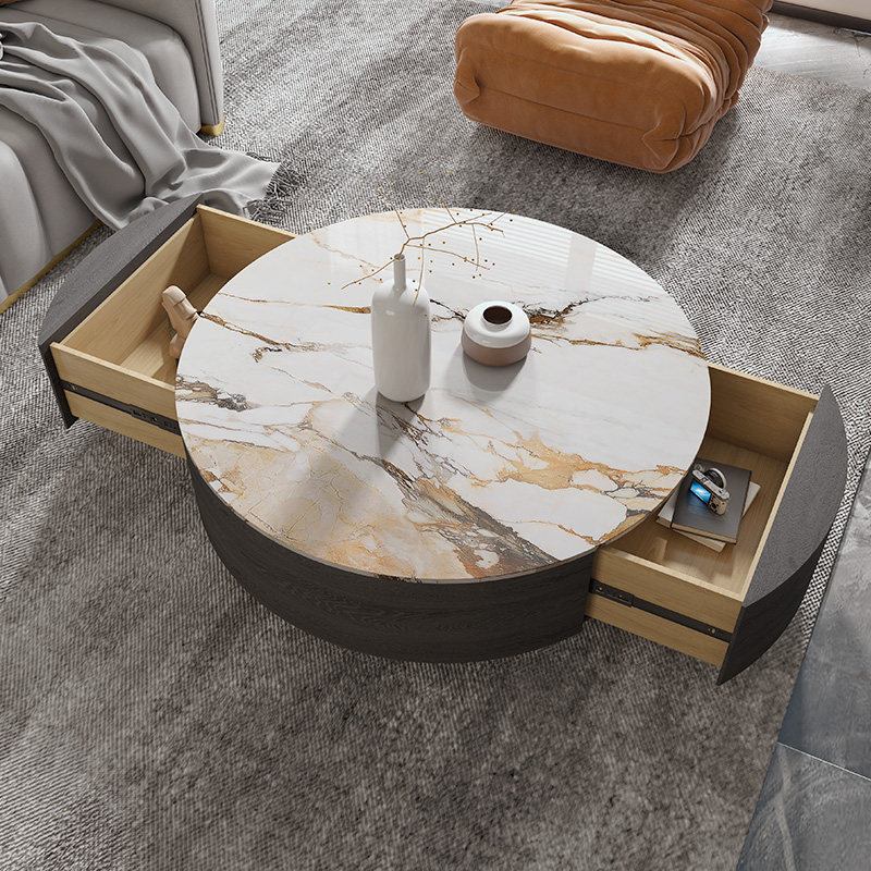 Nordic Italian luxury stone rock plate coffee table simple round marble coffee table table living room household size coffee table
