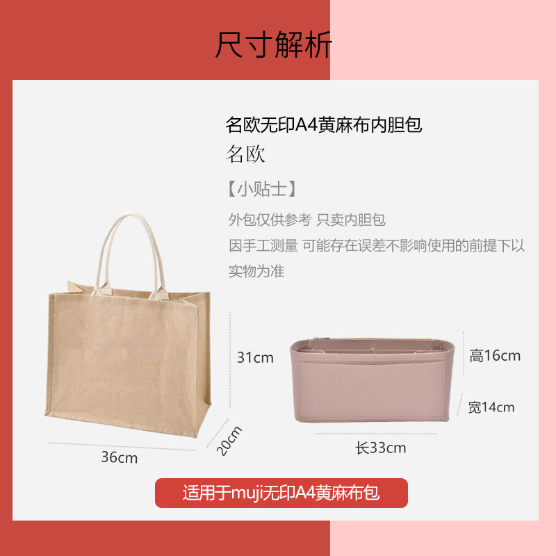 For muji muji A4 jute cloth bag lining bag lining bag support bag small red book recommendation