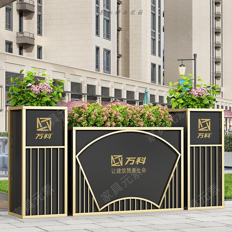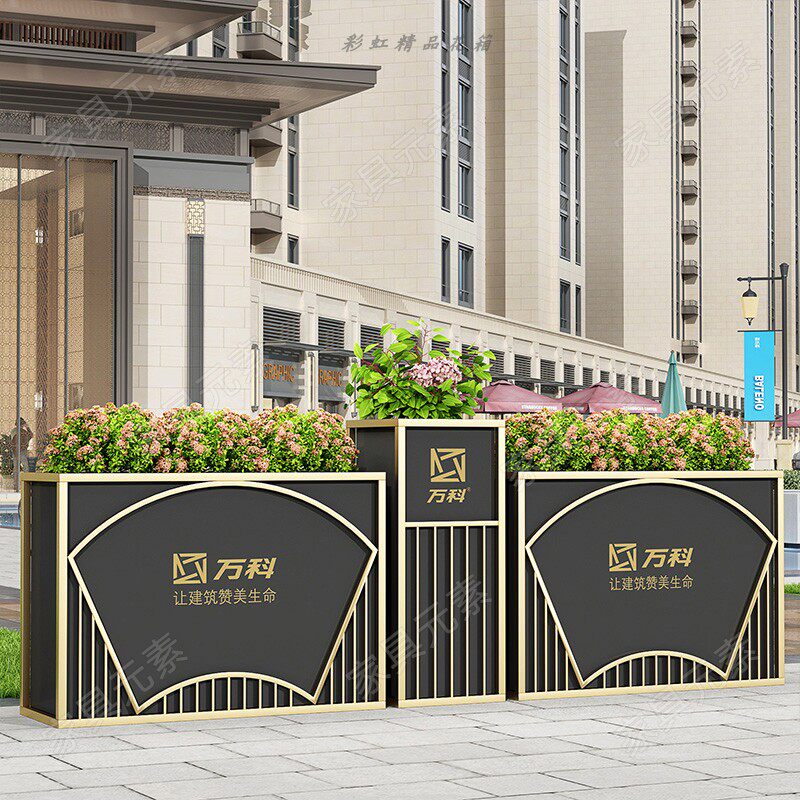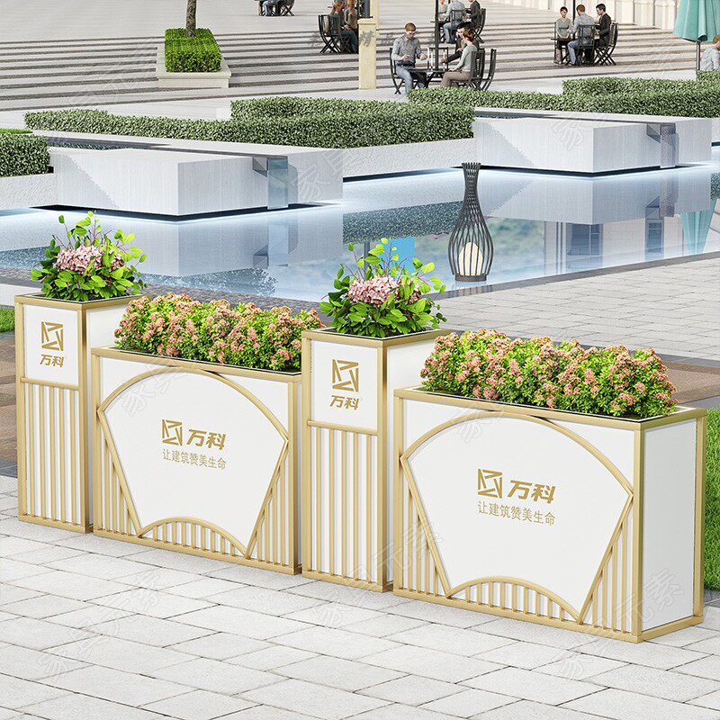 Outdoor Flower Case Combined Iron Art Floor Type Flower Trough Commercial Street Sample House Display Central Courtyard Landscape Flower Altar Custom Stainless Steel