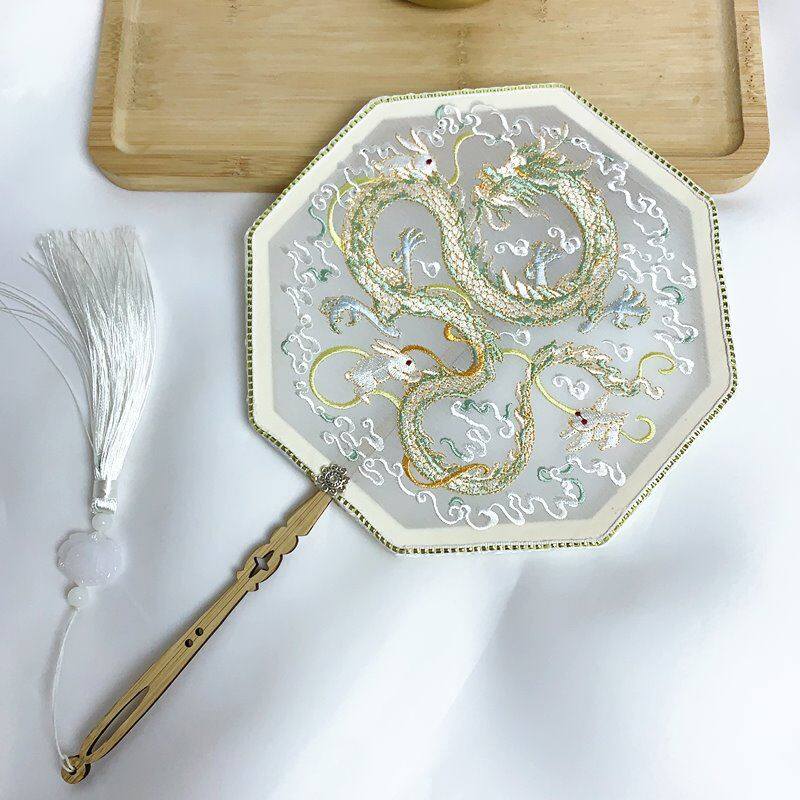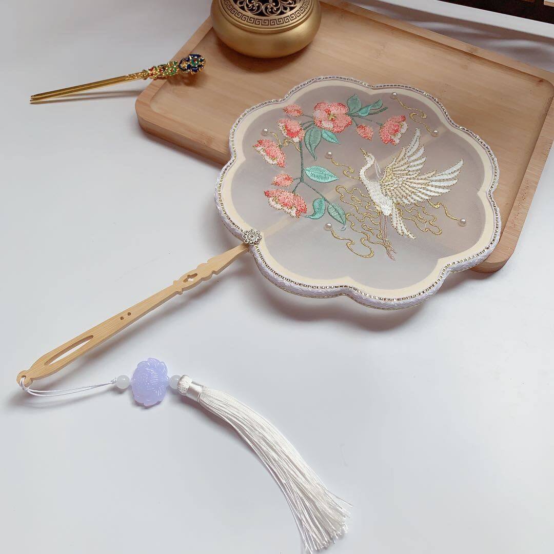 H55-Dragon Palace (long handle) B32-Flower on (eight sides) U49-Sea Tang Fairy Crane (eight petals Haitang) N38-Dragon Palace (ancient wind handle) R23-Embroidered Fairy Crane (white long handle) T