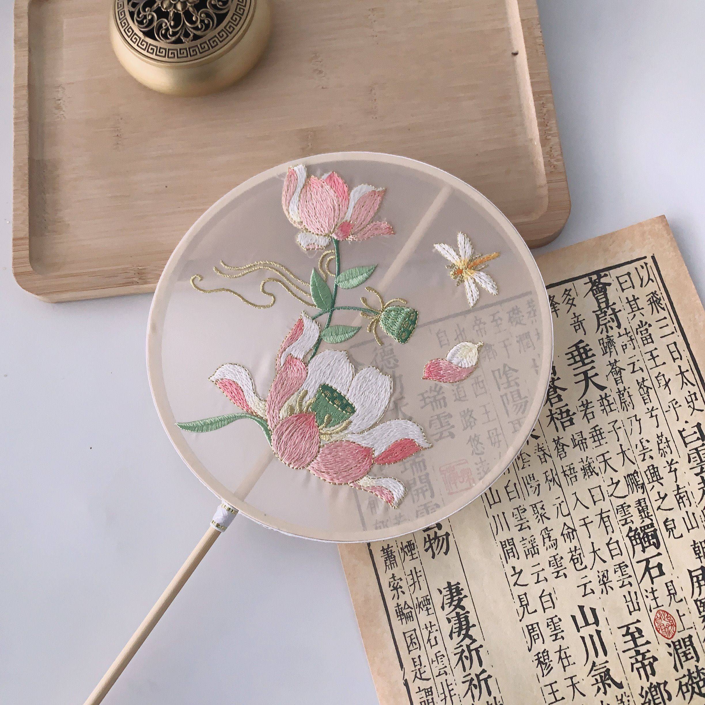 Embroidered hanfu ancient classical embroidered ancient wind group fan gorgeous long handle stream Su upscale fan children small group fan